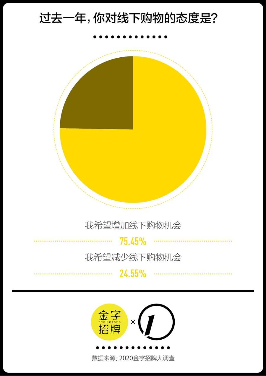 但也不能忽视大品牌完善渠道创造的“家门口的胜利”。在人们出行受限,物流运力又有限的情况下,能便利地买到,在非常时期成为了消费选择的重要因素。在我们的调查中,虽然疫情令72.39%的消费者更多地在线上购物,但75.45%的消费者其实更渴望增加线下购物机会。