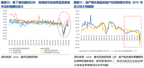 但从数据走势来看,2014年之后这些商品零售额的同比,和地产投资的相关性已经大大削弱了,和地产销售、地产价格之间的相关性也不强。