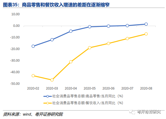 同时,目前疫情防控很到位,对大众生活出行的冲击已经在渐渐消解,服务+线下消费将继续修复,例如餐饮收入,以及比较依赖线下消费场景的服装、家电类零售等,可能会在9月延续回升趋势。