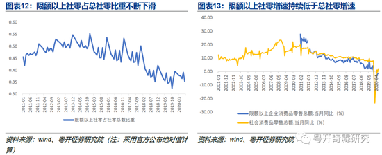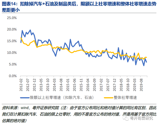 如果我们同时认可这三个消费指标的数据质量,并且不考虑核算方法带来的误差因素,那么这三个指标间的走势背离,主要就是由它们之间的统计范围差异所带来的。