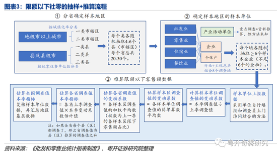 考虑到限额以下社零占比目前高达60%左右,有兴趣的读者也可以简单了解下它的具体核算方式。核算流程列示在图表2中。