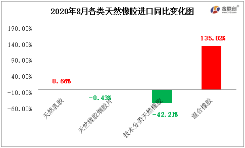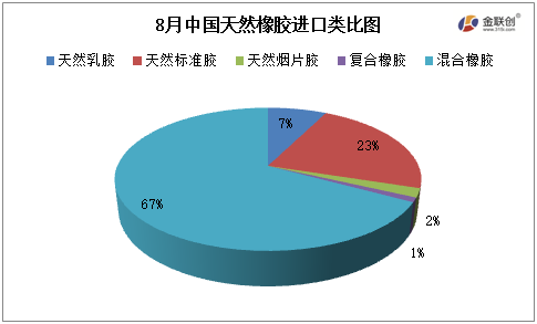 据上图,中国2020年8月天然橡胶进口分类数据显示,天然标胶进口占比23%,较7月增加3个百分点;混合橡胶进口占比为67%,较7月减少2个百分点;天然乳胶进口占比7%,与7月进口比重持平;天然烟片胶进口占比2%,微降1个百分点。轮胎出口转好,对手册胶需求提升,故标准胶进口有所增加。