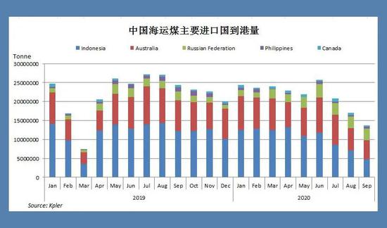 不过,由于整体进口配额不足,印尼煤、俄罗斯海运煤的到港量也出现了不同程度的下降。Kpler数据显示,相比6月份,9月份印尼煤到港量下降59.5%,俄煤到港量下降14.4%。