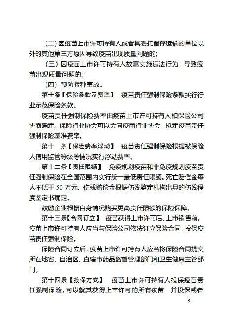 《意见稿》规定,“在中华人民共和国境内上市疫苗的上市许可持有人,应当按照《中华人民共和国疫苗管理法》和本办法规定,投保疫苗责任强制保险;疫苗上市许可持有人以及承保疫苗责任强制保险的保险公司应当遵守本办法”。