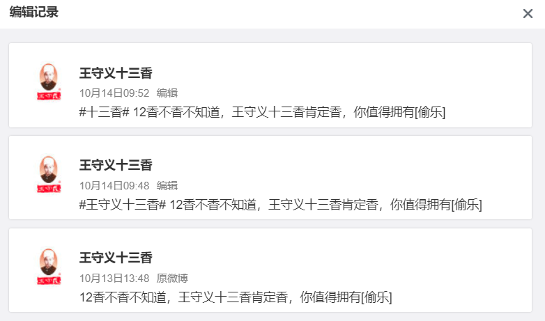 细看这条微博的编辑记录会发现,#十三香#的话题很可能正是听了网友建议后才加上的。