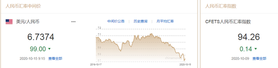 热点栏目10月15日,人民币中间价报6.7374,上调99点,上一交易日中间价报6.7473,在岸人民币上一交易日收报6.7370。