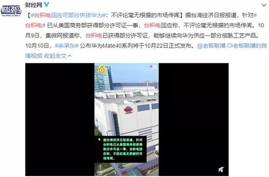 “我们注意到,有报道称台积电已取得对华为供货的许可,我们不评论毫无根据的传闻,也不想评论我们目前(许可证)的状态。”对于台积电获得对华为供货许可证的传闻,该公司总裁兼副董事长魏哲家10月15日在财报会上作了上述表态,称台积电遵守所有规定。