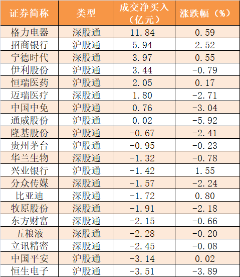 7、今日沪股通和深股通前十大活跃股
