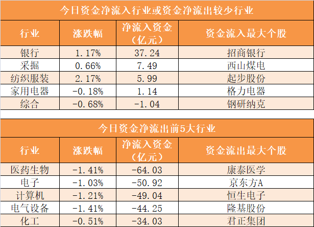 3、银行业净流入37.24亿元居首