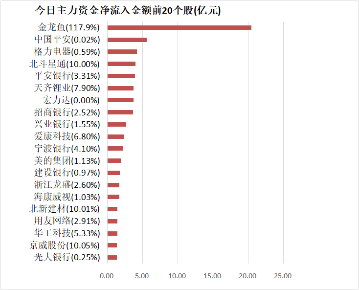 5、金龙鱼主力资金净流入20.42亿元居首