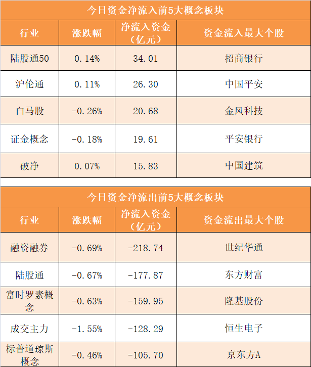 概念板块方面,今日陆股通50、沪伦通、白马股、证金等概念板块资金呈现净流入,其中陆股通50概念净流入34.01亿元居首。