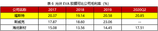 尽管福斯特市占优势明显,但是产品盈利能力稍弱。《英才》记者发现,从毛利率的角度来看,无论是斯威克还是海优新材,都存在毛利率上升的趋势,甚至斯威克的光伏胶膜在2019年度的毛利率达到了23.06%,可福斯特依旧稳定保持在20%左右。