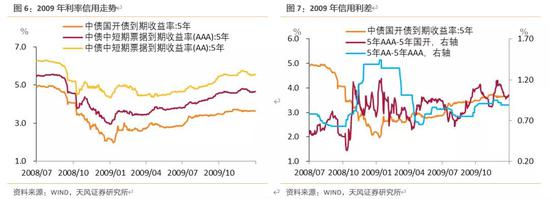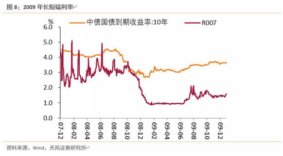 2009年7月的政治局会议提到“保增长、调结构、促改革、惠民生取得明显成效”,正式确认了经济企稳,同时央行开始进行货币回笼并上调央票发行利率,资金面收紧,资金利率也开始回升,中长期利率债收益率以及信用利差均上行,需要注意在此之前十年国债已经开始上行调整。