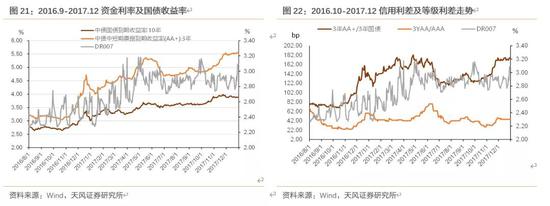 (3)2016.10中央政治局会议直接确认经济企稳,11月发布的三季度货币政策执行报告改变温和观点,流动性拐点到来,利率一路上行,并且与此前几次牛熊转换之间不同的是,本轮利率拐点之后资金利率并未保持稳定,而是继续上行,与此同时,信用行情并未延续,信用利差与等级利差均上行。
