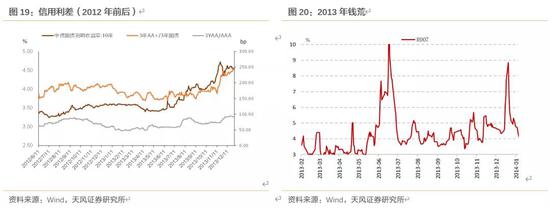 (2)2012年 7月利率行情结束,在基本面并未确认企稳前资金利率仍平稳,信用债牛市仍持续,直至 2013年中钱荒结束,信用利差大幅调整;