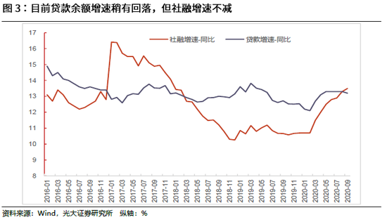 展望后续,目前经济仍处于快速复苏阶段,财政政策实施效果进一步显现,社融和贷款仍处于较高增速中,出口、生产处于较高水平,投资和消费增速预计也将进一步提升,4季度经济仍将处于快速增长阶段。目前国民经济中,消费的重要性日益凸显,影响经济复苏的高度将更多的由消费决定。但目前来看,社消增速离疫情前仍有一定的差距,而影响消费的决定性因素—居民可支配收入增速恢复情况一般(前三季度名义增长3.9%、实际增长0.6%)。另外,固定资产投资中,占比最高且内生性较强的制造业投资目前累计增速仍处于负值区间,增速9月也有所降低(后文将具体分析)。因此我们认为,四季度当季GDP增速能够达到的高度有较多不确定性,很大概率难以恢复到疫情前水平。从居民收入、消费、制造业投资这几项指标恢复的速度来看,经济要想恢复到疫情前水平,可能要到2021年二季度。