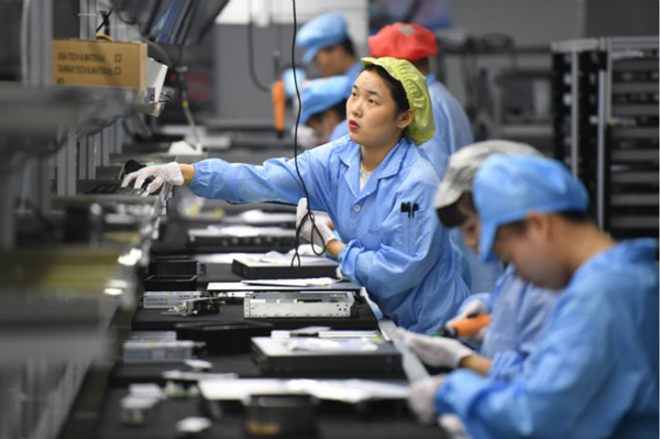 9月22日,在福建省福州市一家高新技术企业,员工在生产数字网络产品。图片来源:中国政府网