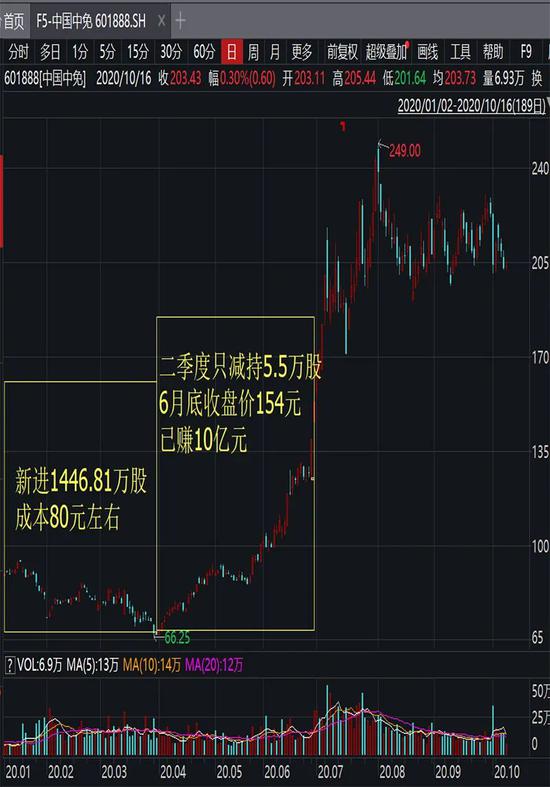 截至10月16日,中国中免股价报收203.43元,如果陈发树三季度以来没有卖出的话,每股盈利高达120元,整体浮盈或超过18亿元。如果他在前期高点出货的话,浮盈或超过20亿元。