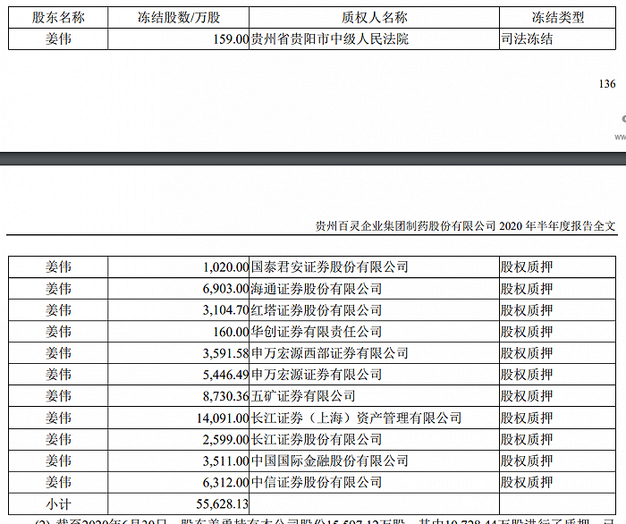 无独有偶的是,9月26日时贵州百灵还披露过一份提示公告,即姜伟在申万宏源也有4笔股票质押式回购融资合约已到期待购回,最终姜伟与申万宏源证券有限公司(作为证券行业支持民企发展之申万宏源2号单一资产管理计划管理人)及申万宏源签订《股份转让协议》,姜伟将转让出手4367.69万股,占总股本的3.1%,拟定的转让价格为6.19元/股。