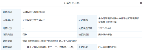 值得注意的是,2017年6月,广州微肽生物科技有限公司因未办理环境影响评价审批手续和环境保护设施竣工验收手续,被白云区环境保护局责令停止化妆品制造项目生产,并被罚款3万元。