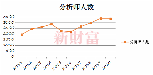图3:2011-2020年全国证券投资咨询人员(分析师)数量变化情况