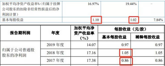 另外,老版2018年的每股收益变成了1.05元/股,2017年则为0.86元/股,分别与新版的财务报告相差0.05元和0.16元。