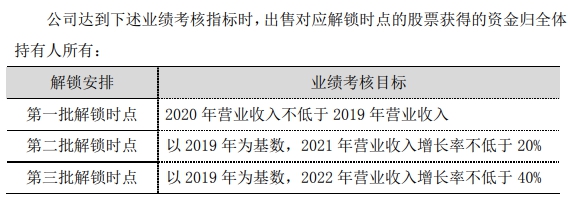 而业绩考核方面,正海磁材在公告中表示,公司达到下述业绩考核指标时,出售对应解锁时点的股票获得的资金归全体持有人所有:第一批解锁时点为2020年营业收入不低于2019年营业收入;第二批解锁时点为以2019年为基数,2021年营业收入增长率不低于20%;第三批解锁时点为以2019年为基数,2022年营业收入增长率不低于40%。