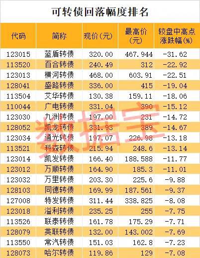 从收盘数据来看,这次“熔断潮”都显示出炒作风险。比如蓝盾转债,盘中最高467.94元,收盘时价格较最高价回落31.62%;盛路转债,盘中最高415元,收盘下杀至336元,最高位买入可能会亏近20%;百合转债,最高312元,收盘下杀至240.49元,买在高点的人可能会亏22%。
