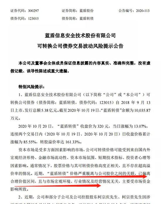 对于今日可转债大幅波动,蓝盾股份晚间公告称,近期,“蓝盾转债”价格严重脱离与公司股价之间的关联,已偏离合理价值区间,且与市场宏观环境、行业情况及经营情况无关,主要受市场资金影响所致。此外,对于量子通信概念,公司公告称目前在“量子科技”领域未进行市场业务开展、无相关业务收入。