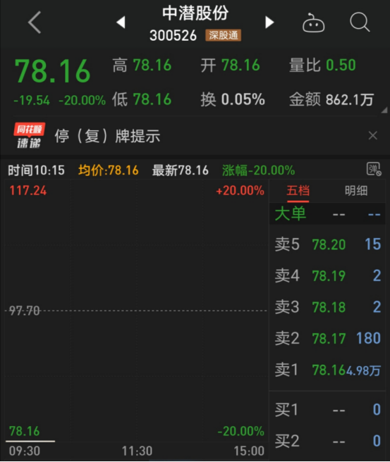 疑“忽悠式收购”告吹且信披违规被证监会立案调查后,一年内股价曾暴涨17倍的创业板大牛股中潜股份(维权)重大资产重组终止,股票今日复盘无悬念一字跌停。