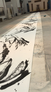 2020年10月20日,霜凝(唐双宁)先生在京挥毫创作百米《万马奔腾》写意巨作。