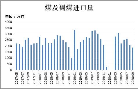 2020年9月份,中国进口煤炭1867.6万吨,较去年同期的3028.8万吨减少1161.2万吨,下降38.34%。较8月份的2066.3万吨减少198.7万吨,下降9.62%。2020年1-9月份,全国共进口煤炭23942.9万吨,同比下降4.4%。,这是进口煤累计量今年首次出现同比负增长。市场上传出澳煤限制措施,短期进口煤放松政策难以实现。但是今年前八月从澳大利亚进口的煤炭已超过去年全年从澳大利亚进口的量,后市澳煤进口或如预期出现减少,也有印尼煤炭进行补充。