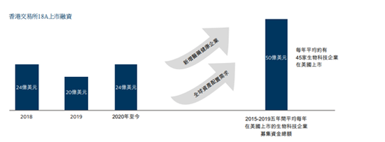 美国是目前最大的生物科技IPO市场。在过去五年中,每年平均约有45个生物科技企业IPO,募资总额约50亿美元。如果同样要在香港交易所筹集50亿美元,即相当于IPO时总市值约200亿美元(假设平均上市发行量为25%),我们能否期望未来在香港交易所上市的生物科技企业达到这一规模呢?