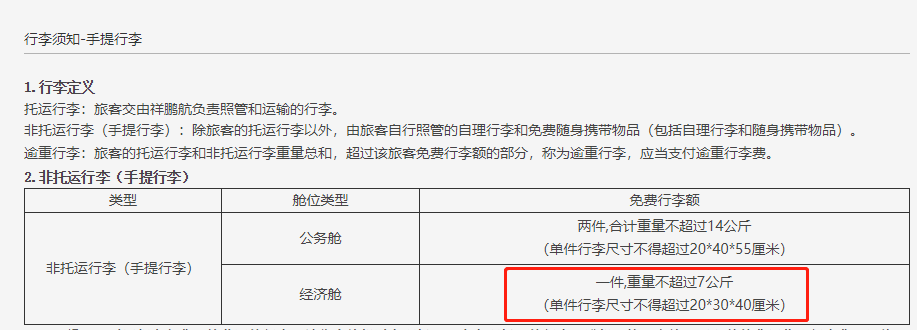 不过,中国网财经记者查阅发现,同为“廉航”的中国联合航空规定,经济舱旅客可免费携带重量不超10公斤,尺寸不超20*40*55 厘米的手提行李(不含I/Z/U舱)。该尺寸符合20 寸标准登机箱大小。