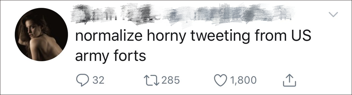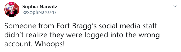 该推文中提到的“不恰当推文”,是对一个色情博主发布的色情信息和裸照的回复。这名博主还专门发文证实此事,并调侃道:“使发布色情推文正常化,从布拉格堡军事基地开始。”