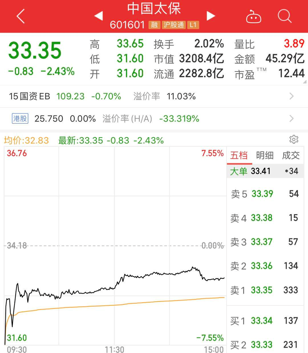 不过,随后中国太保跌幅收窄,整个保险板块跌幅也随之缩小。截至22日收盘,太保股价收于33.35元/股,跌2.43%。保险股指数跌1.56%。