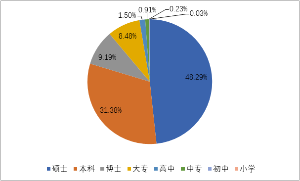 具体来看,剔除未披露学历信息的总经理后,该群体中硕士及以上学历者占比为57.48%。其中,硕士学历者人数最多,有1902人,占比为48.29%,几乎接近半数;博士学历者占比为9.19%。而此前对董秘群体的统计显示,董秘中硕士及以上学历者占比为48.37%,其中博士学历者占比为3.23%。