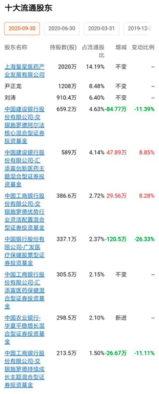 汇添富创新医药主题混合型基金、交银施罗德优势行业灵活配置混合型基金则采取加仓操作,分别加仓47.89万股、29.56万股。此外,截至三季度,华夏平稳增长混合型基金新晋为山河药辅前十大流通股股东。