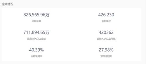 从逾期情况来看,截至2020年9月30日,共有逾期42.6万笔,目前的借贷余额笔数是152.3万笔,项目逾期率为27.98%;逾期金额82.65亿元,披露逾期金额率为40.39%,逾期90天以上的金额71.2亿元。
