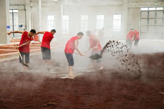 郎酒集团总裁刘毅宣布,2020吴家沟生态酿酒区,重阳下沙仪式正式开始!下沙现场一派热火朝天的景象,伴着一声‘正心正德、敬畏自然、崇尚科学、酿好酒’的呐喊,下沙流程中的请水进粮、填粮、润粮、拌粮、上甑、摊晾等环节一 一展开,古法手工,一丝不苟,佳酿方成。