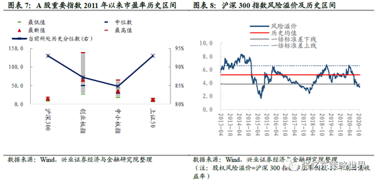 当前估值水平:截至10月23日,沪深300、创业板、中小板、上证50PE-TTM分别为15.2倍、65.4倍、35.7倍、12.3倍,处于2011年以来的93%、87%、85%、93%分位数水平;PB分别为1.6倍、7.7倍、4.5倍、1.3倍, 处于2011年以来的65%、90%、78%、56%分位数水平。