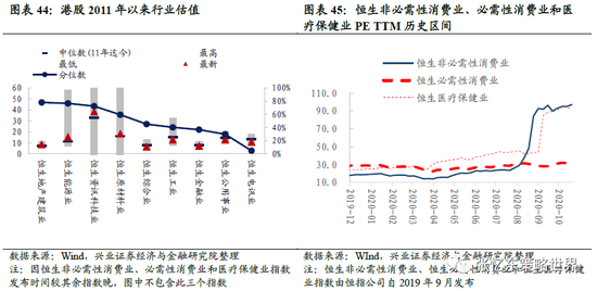 恒生医疗保健业(91.9倍)、恒生必需性消费业(31.6倍)、恒生非必需性消费业(97.0倍)。