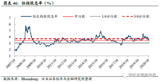 当前恒生指数的股息率为3.48%,低于上周的3.55%,处于2006年9月以来的中位数和3/4分位数之间。
