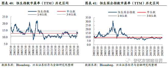 恒生指数当前PE(TTM)为13.3倍,恒生国指PE(TTM)为9.7倍,二者均处于2002年以来的中位数附近。