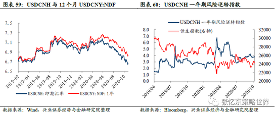 汇率市场:截至10月23日,美元兑港元汇率为7.7501;USDCNH即期汇率为6.6668,12个月人民币NDF为6.8235。USDCNH一年期风险逆转指数为3.99,高于上周五的3.78,处于2011年以来的71%分位数水平。