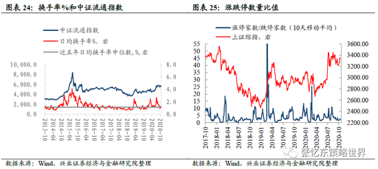 换手率:A股日均换手率从上周的1.27%下降为1.08%,低于近五年以来的中位数水平;截至10月23日,涨停家数/跌停家数比(10日移动平均)为4.76,处于2013年以来的53%分位数水平。