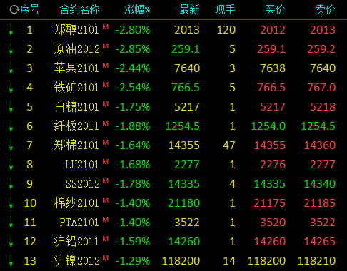 热点栏目10月26日,国内期市开盘,甲醇、原油跌近3%,铁矿石、苹果跌逾2%;棕榈油、豆油涨逾1%。