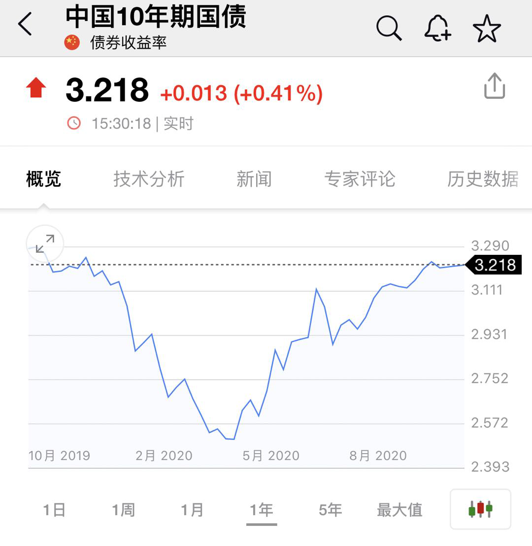 此外,十年期国债收益率来到了3.22%附近,持续上涨的趋势依然在延续当中。