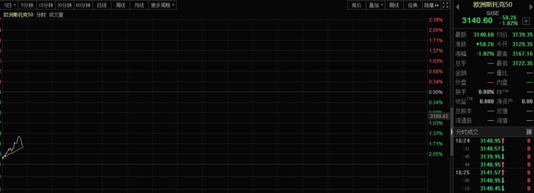 在国债收益率上行的过程当中,外围市场也出现了急挫的现象。欧洲股市开盘大跌,德国DAX指数跌2.6%,英国富时100指数、法国CAC40指数跌超1%。欧洲斯托克600科技指数大跌5.8%。