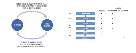中国文旅的收益来自销售度假物业和文化旅游业务,下图列示该公司的两个业务分部之间以及其涉及的主要步骤如何产生协同效应: